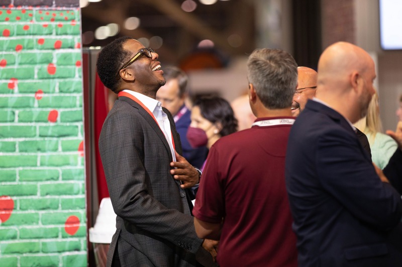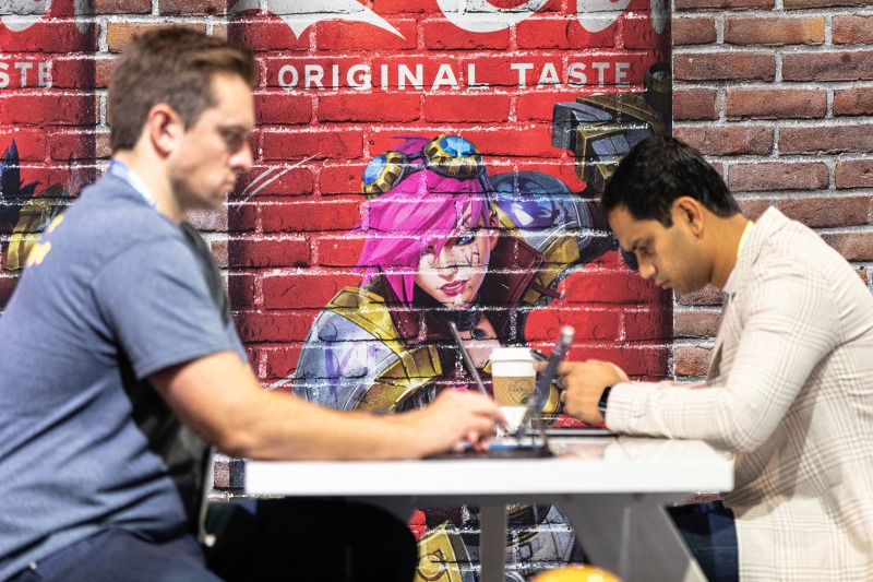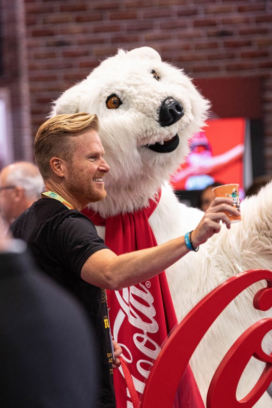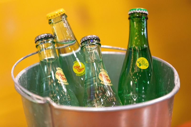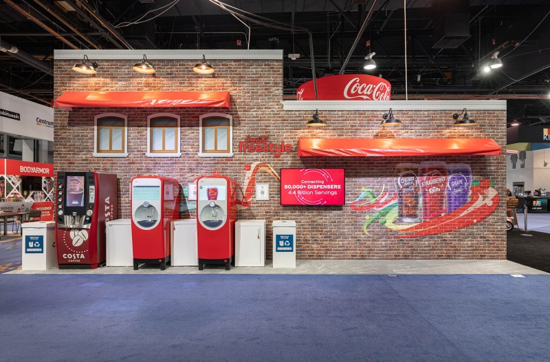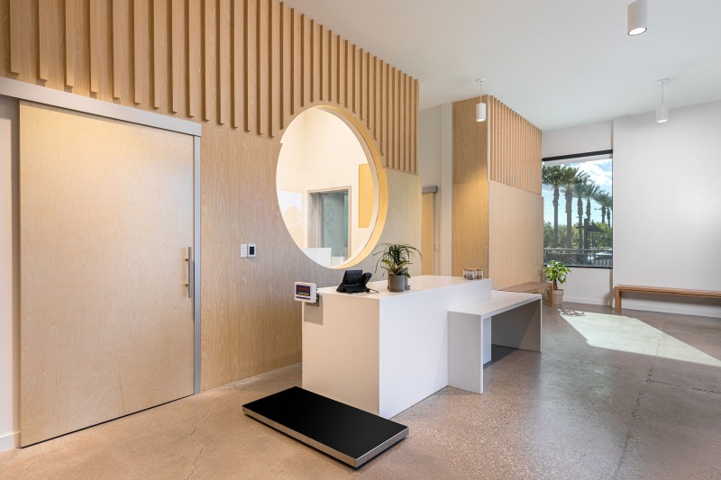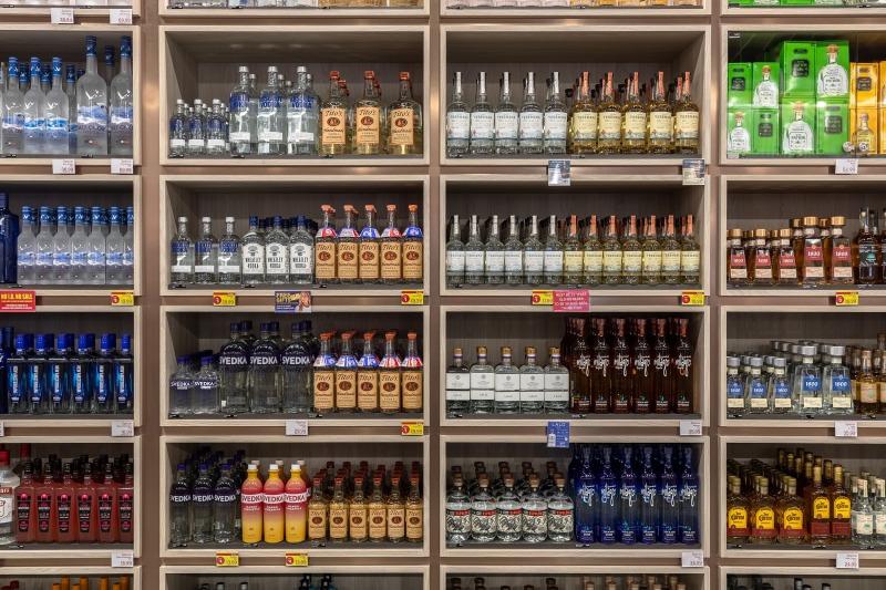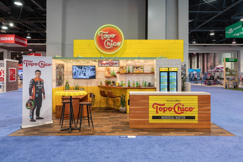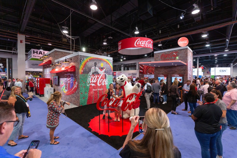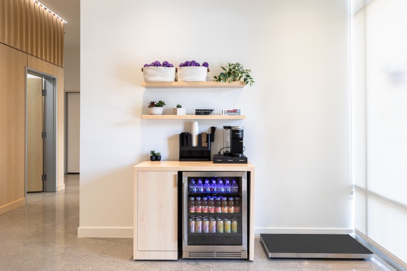 The interior, however, was the star of the show. Our objective was to highlight how ADM employed thoughtful design strategies and innovative products to create a fluid, functional, and beautiful retail space suitable for accommodating hordes of Vegas visitors. Ocean-like waves ripple through the ceiling panels, receding from the front of the store to the back like a shoreline. At the rear, a backlit halftone metal graphic of the Las Vegas sign anchors the space, while playful graphic prints line the walls, keeping the shop both tidy and fun.